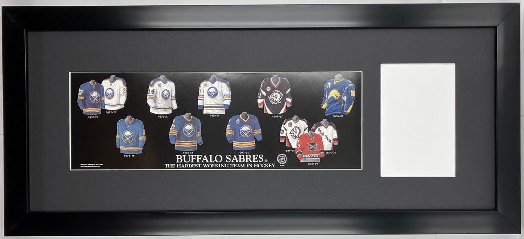 Framed Evolution History Buffalo Sabres Uniform Print with Your Photo: Framed with our classic, smooth black frame