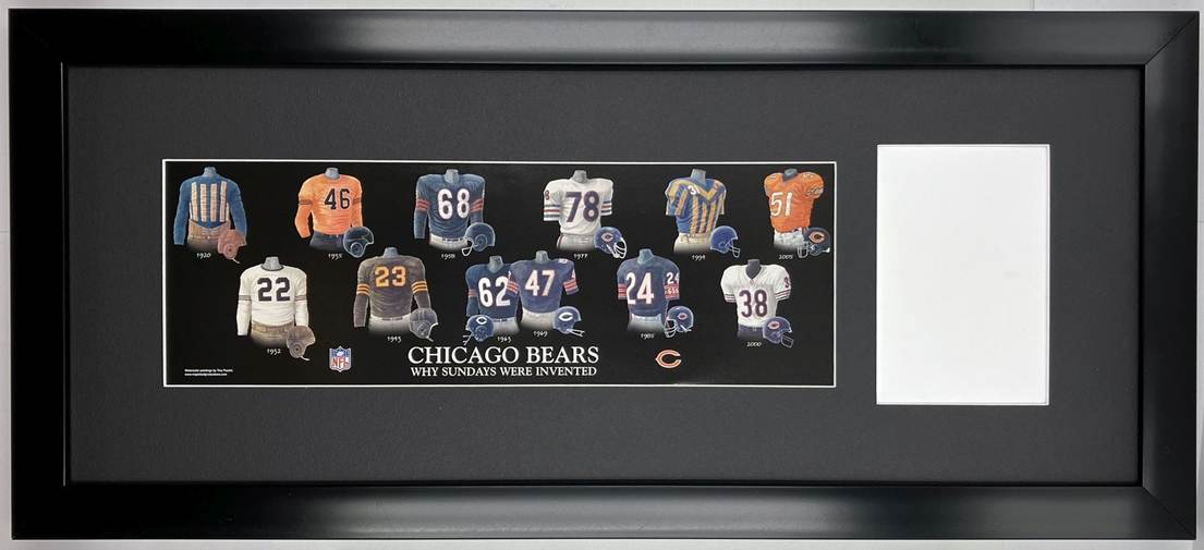 Framed Evolution History Chicago Bears Uniform Print with Your Photo: Framed with our classic, smooth black frame