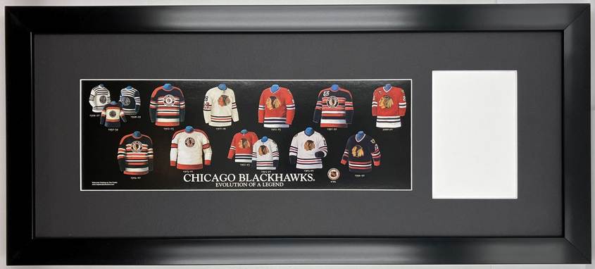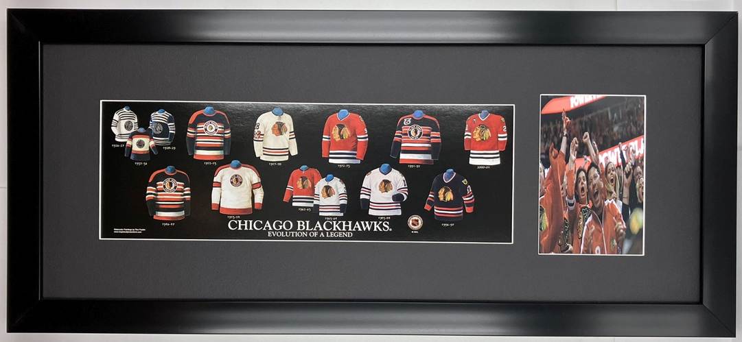 Framed Evolution History Chicago Blackhawks Uniform Print with Your Photo: Framed with our classic, smooth black frame