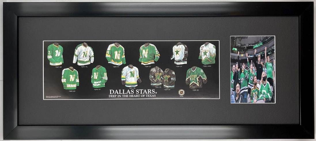 History Dallas Stars Uniform Print with Your Photo: Framed with our classic, smooth black frame