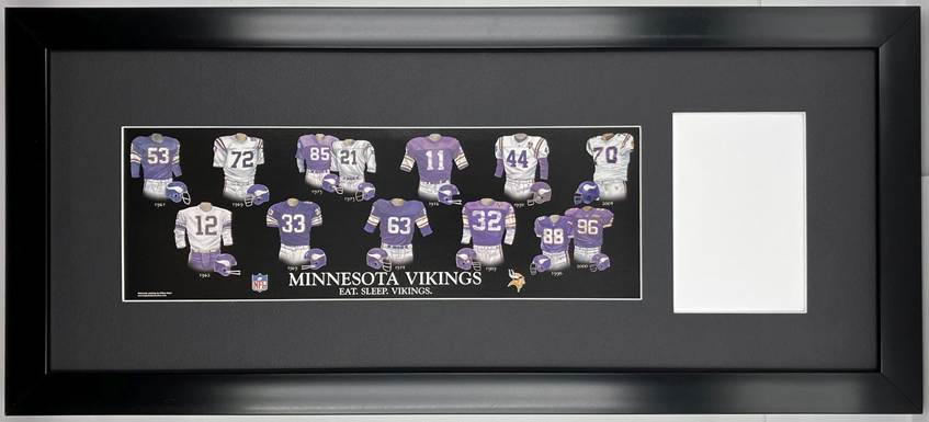 Framed Evolution History Minnesota Vikings Uniform Print with Your Photo: Framed with our classic, smooth black frame