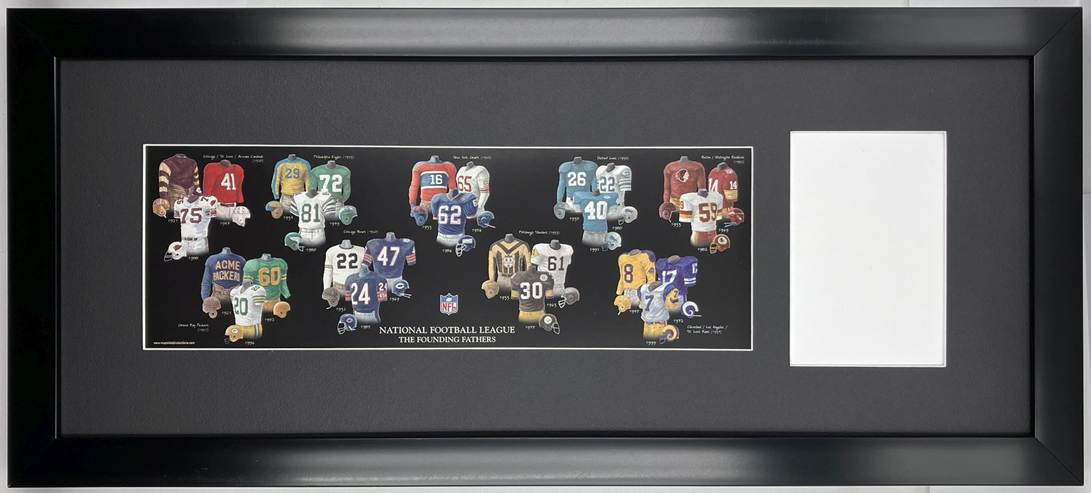 on this NFL-licensed print titled “THE FOUNDING FATHERS” are the uniforms
