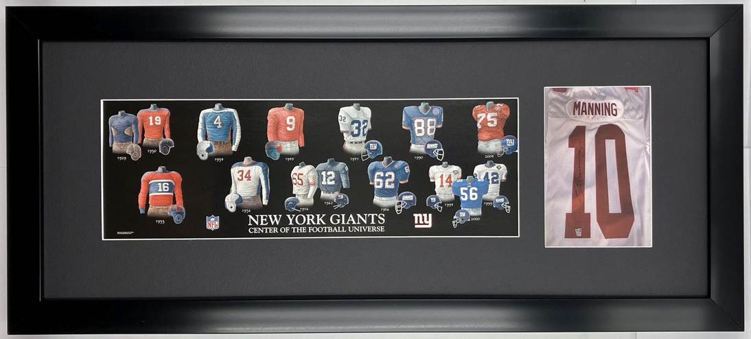 Framed Evolution History New York Giants Uniform Print with Your Photo: Framed with our classic, smooth black frame