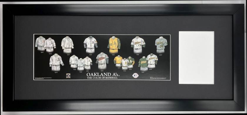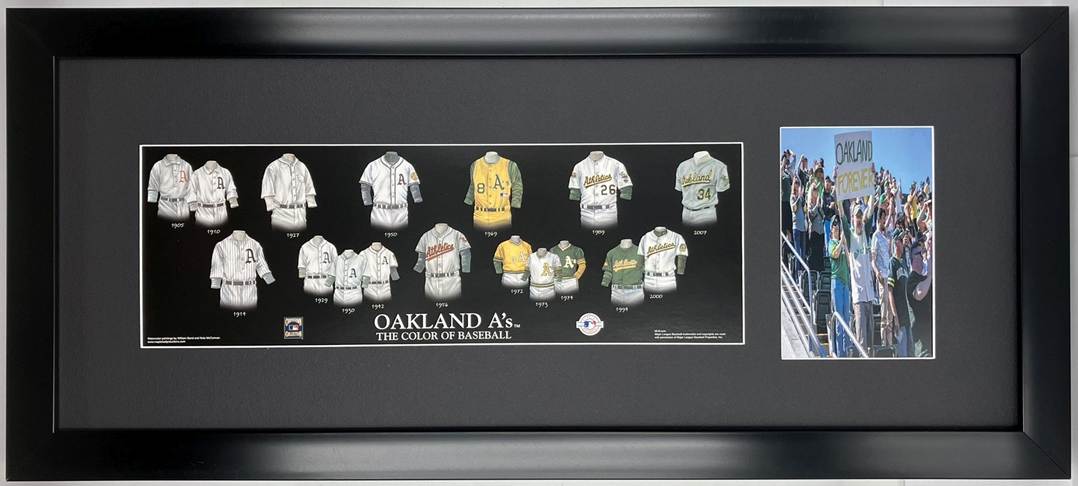 Framed Evolution History Oakland A’s Print with Your Photo: Framed with our classic, smooth black frame