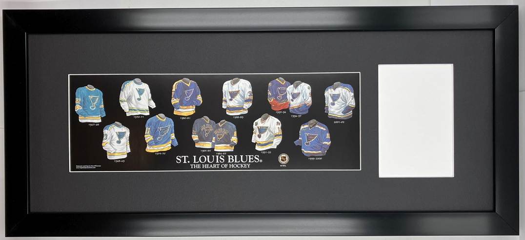 History St. Louis Blues Uniform Print with Your Photo: Framed with our classic, smooth black frame