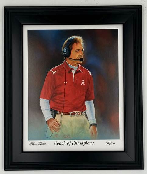 by award-winning sports artist Ben Teeter showcases Nick Sabin. Measuring 8