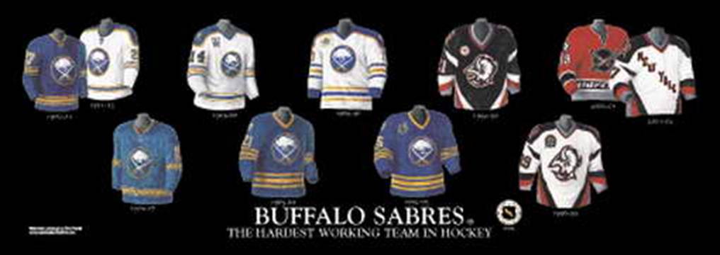 Titled “The Hardest Working Team in Hockey” and licensed by the National Hockey League, we present the uniforms history of the Buffalo Sabres.