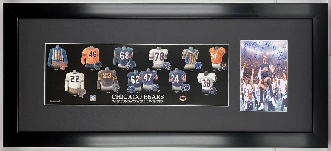 Framed Evolution History Chicago Bears Uniform Print with Your Photo: Framed with our classic, smooth black frame