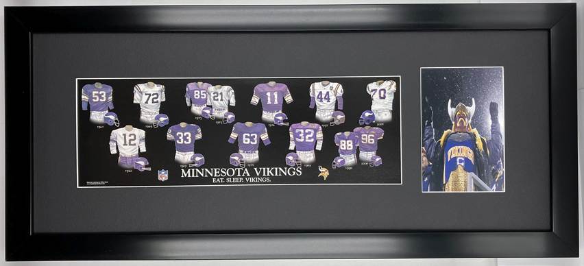Framed Evolution History Minnesota Vikings Uniform Print with Your Photo: Framed with our classic, smooth black frame