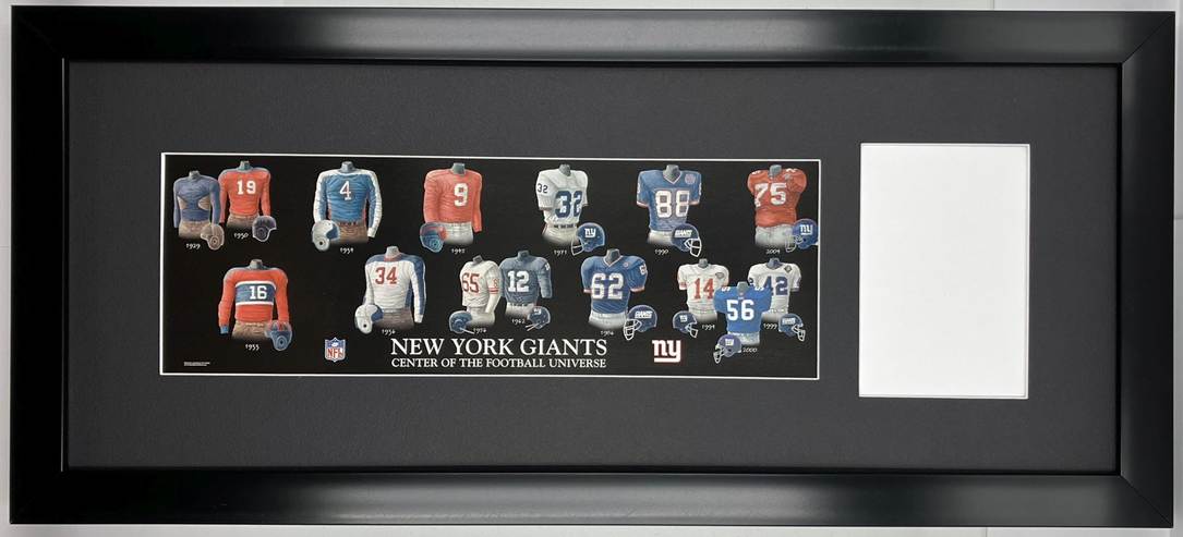 Framed Evolution History New York Giants Uniform Print with Your Photo: Framed with our classic, smooth black frame
