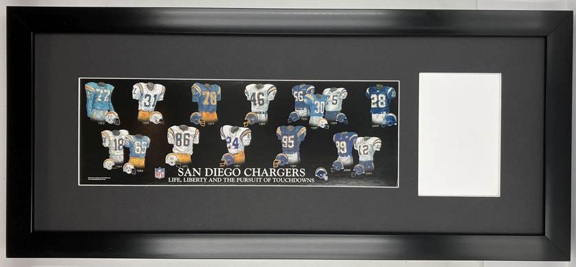 Framed Evolution History San Diego Chargers Uniform Print with Your Photo: Framed with our classic, smooth black frame