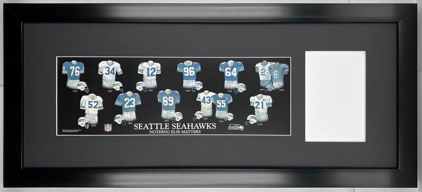 Framed Evolution History Seattle Seahawks Uniform Print with Your Photo: Framed with our classic, smooth black frame
