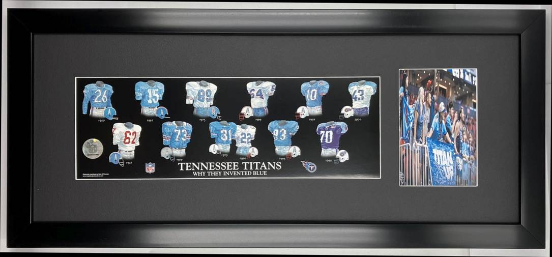 Framed Evolution History Tennessee Titians Uniform Print with Your Photo: Framed with our classic, smooth black frame